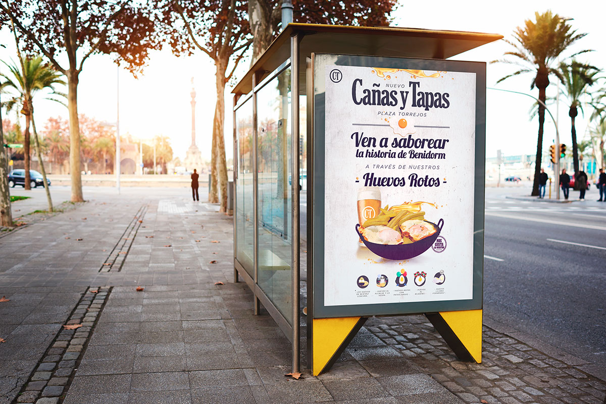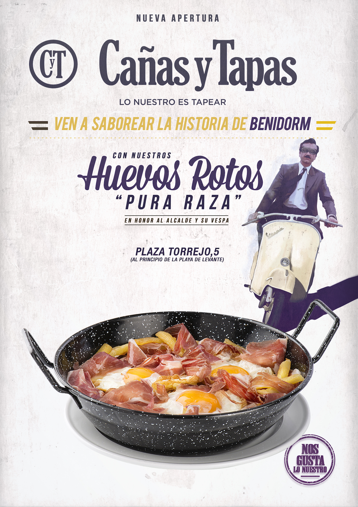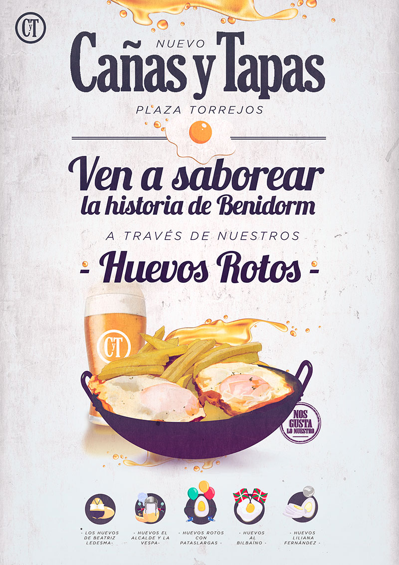 Del recorrido con Domino’s conocimos a nuevos compañeros de viaje. Cañas y Tapas aterrizaba en Benidorm y tenía mucho que enseñar y si no que se lo digan a Pedro Zaragoza y su viaje en Vespa a favor del destape. Comunicación cercana y diseño de piezas para campaña local.