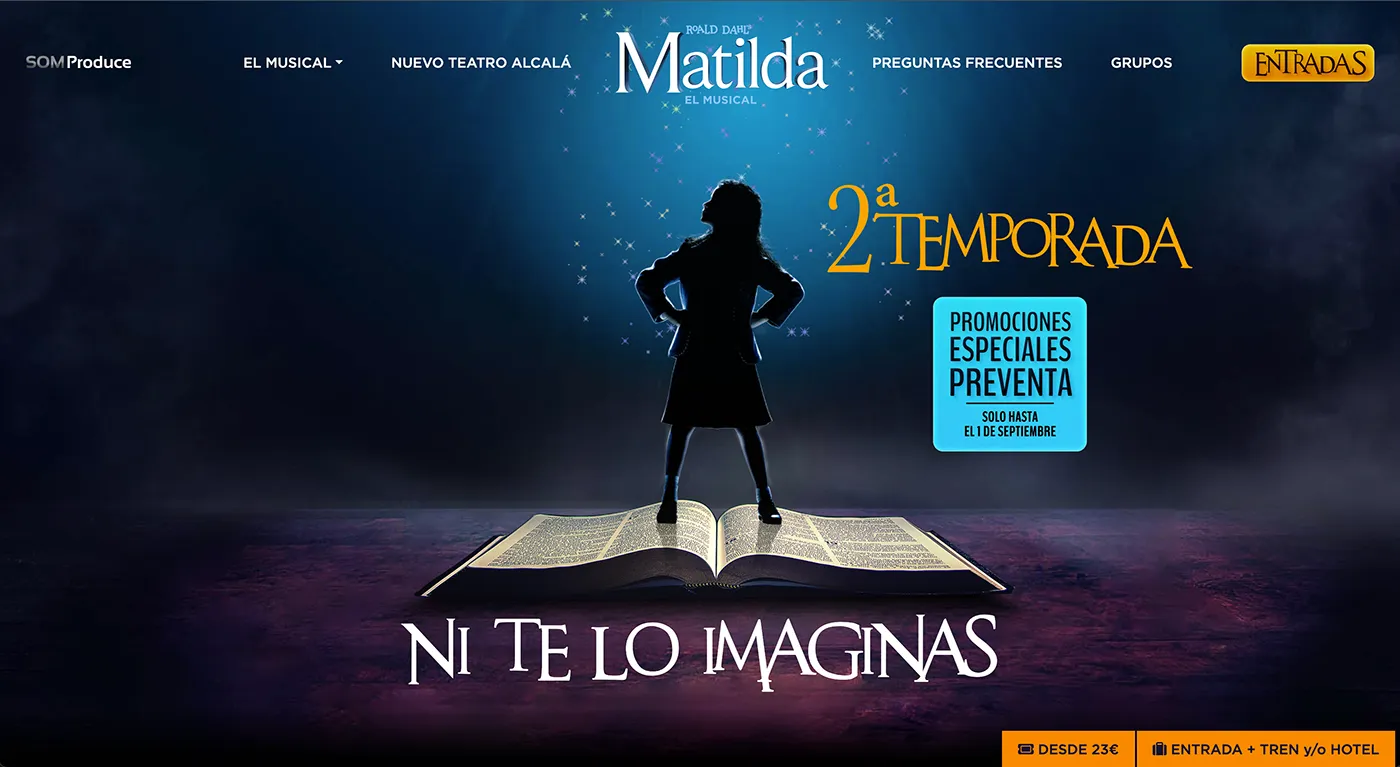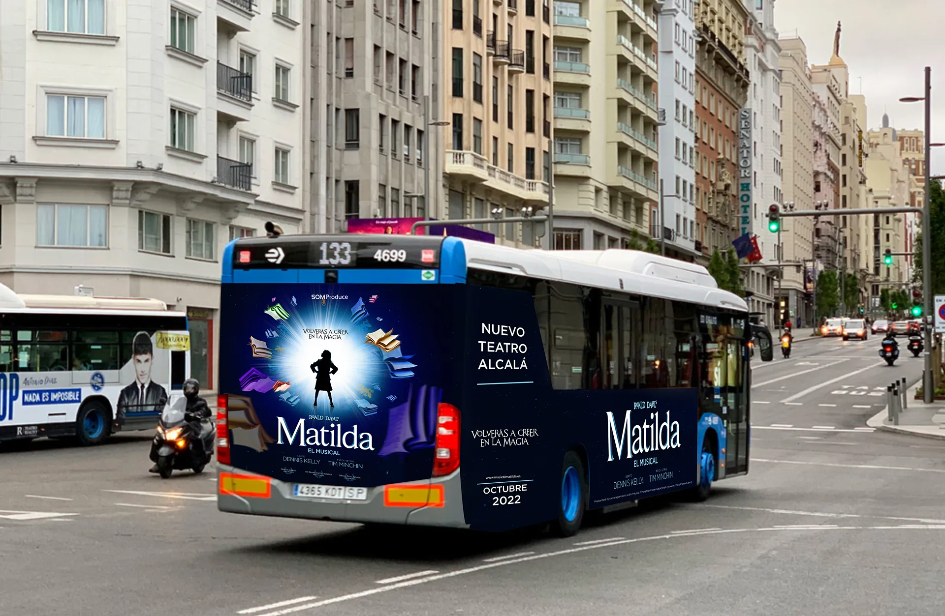 La magia de este musical hay que sentirla. Trabajamos junto al equipo de SOM Produce para que cada detalle de Matilda se pudiera transmitir desde que ves un autobús por el centro de Madrid, hasta en la web cuando vas a comprar las entradas. Déjate llevar con algunas de estas piezas: